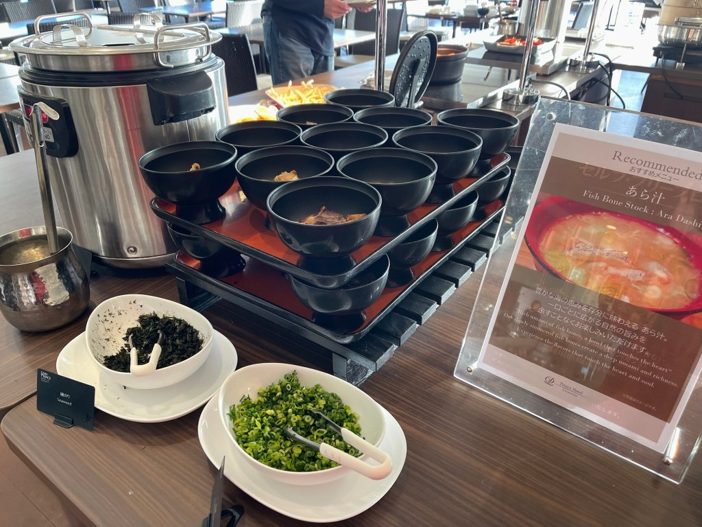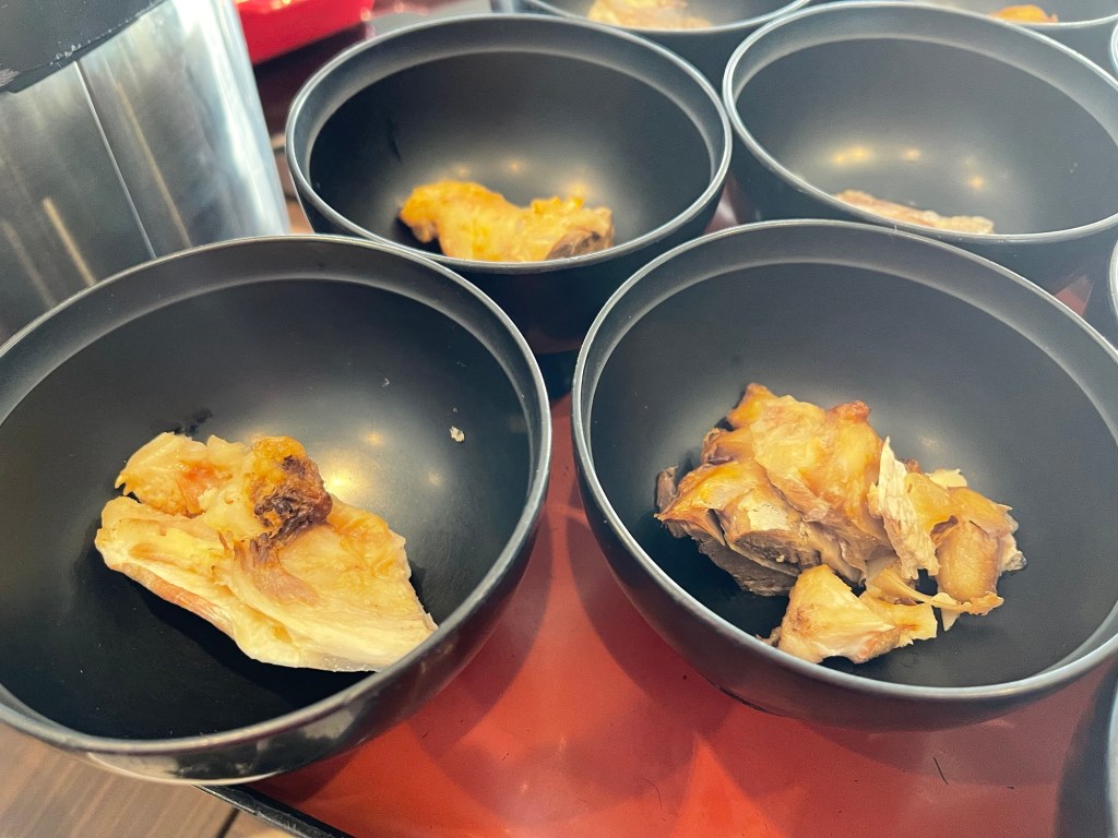 あら汁はあら入りお出汁のお味噌汁に、香ばしく焼かれた具が入る仕様でした。お好みで磯海苔と小ネギをたっぷり入れられたので、かなり満足度が高かったです。