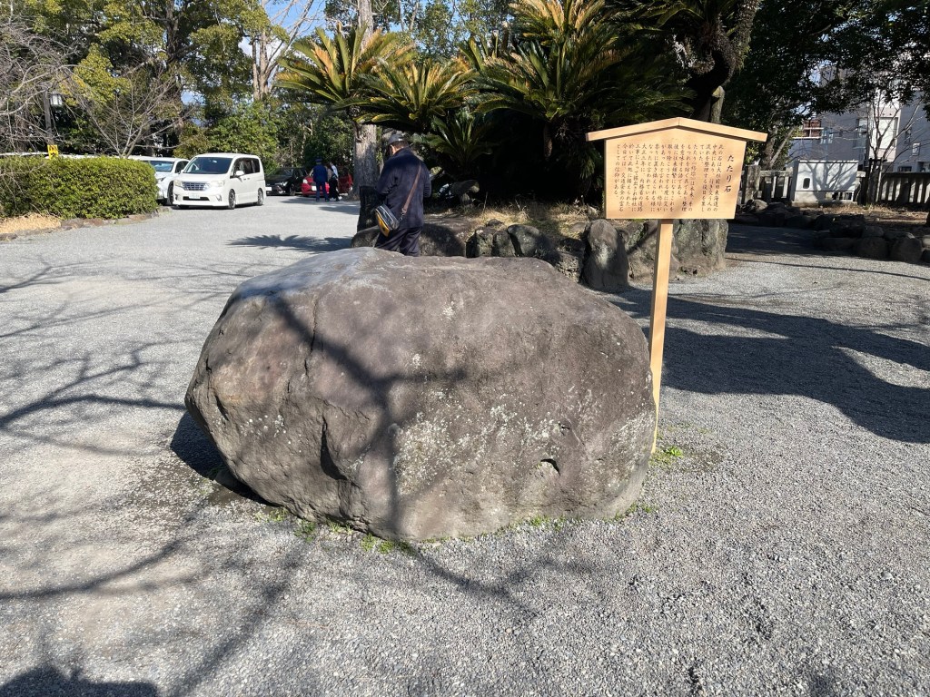 鳥居を見て右側、福太郎茶屋側の道路近くには「たたり石」があります。
