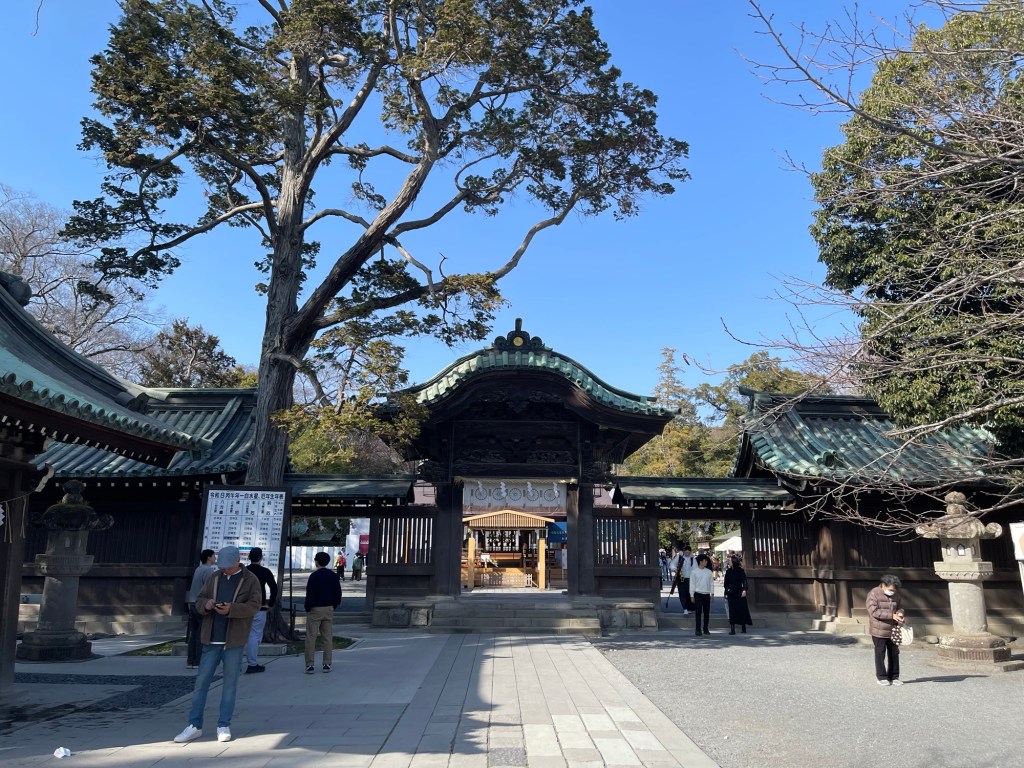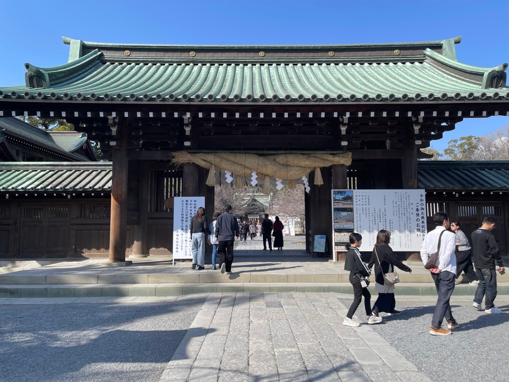 大きなしめ縄のある総門へ。