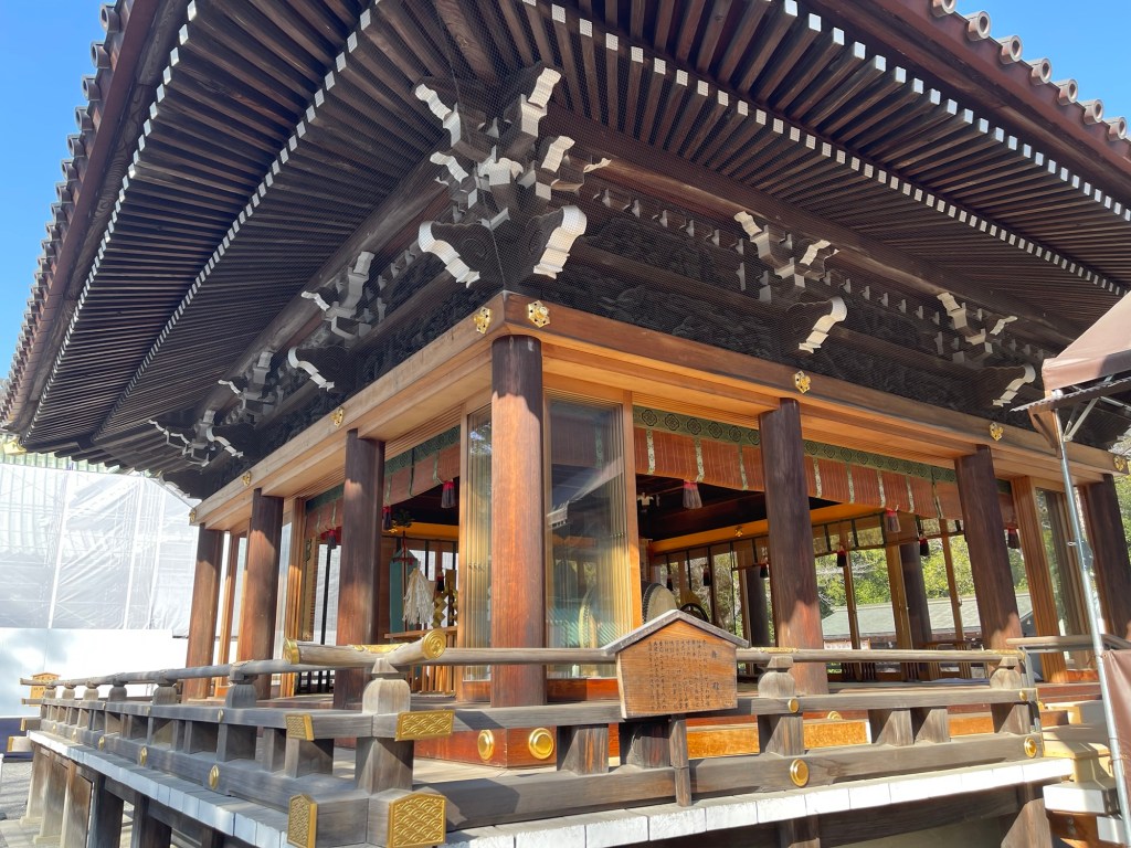 立派な社ですね。本殿が工事中だったのは