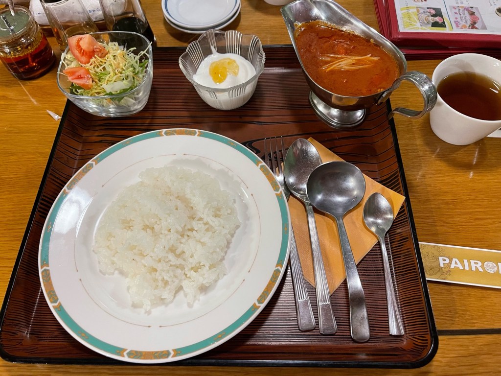 我々はカレーセットと、こちらのお宿が都内で運営しているという「PAIRON」という餃子屋さんの点心セットを頼みました。