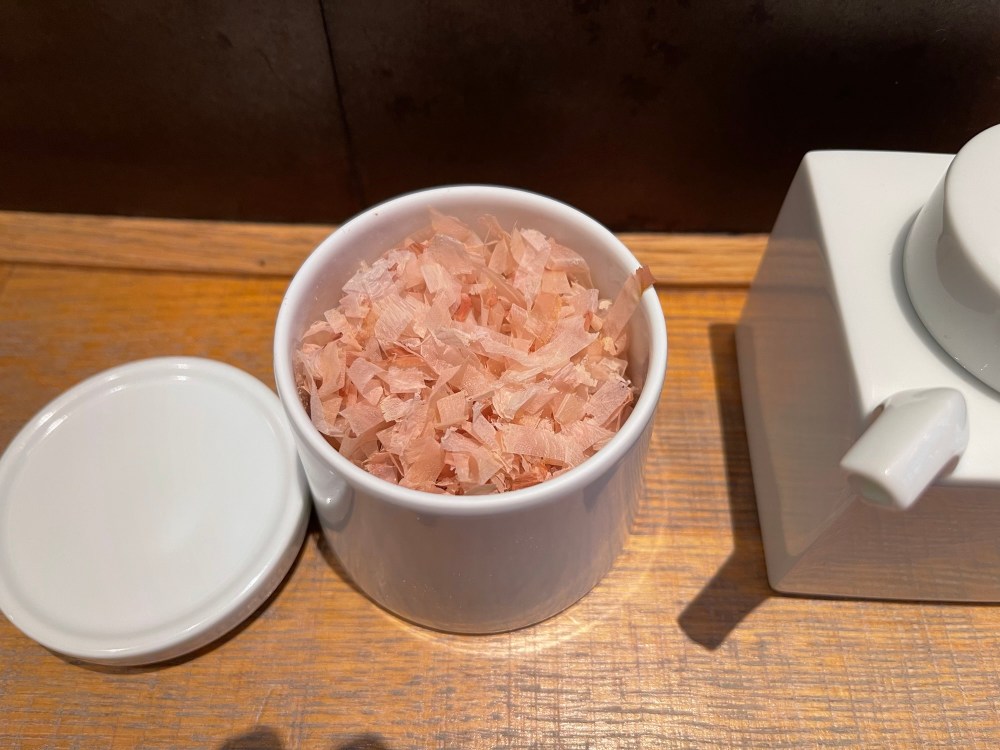 ホント!小鉢にしては多い量で、私なら他にご飯が有れば、それだけでいけそうです。鰹節のかけ放題って初知りですが、太っ腹なお店ですね