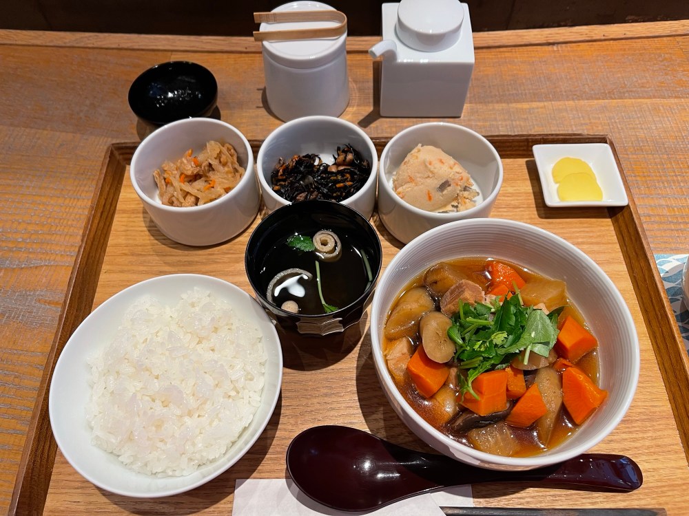 小鉢(切り干し大根・ひじき煮・卯の花)が想像の倍くらいあり、メインを食べずしてお腹がいっぱいになりそうでした。メインに「厚切り豚肉とごろごろ野菜の旨煮」を選んだので、途中、休憩を挟みつつ、なんとか食べきりました。