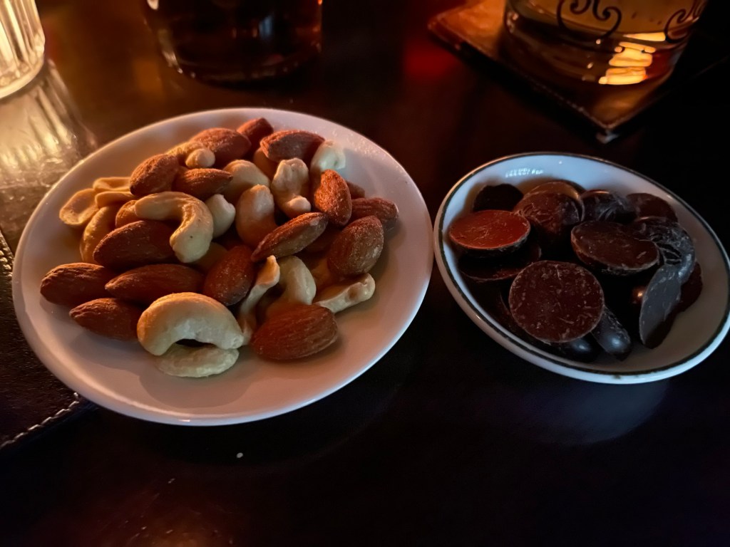 途中、海外旅行者と思われる白人男性の二人組が入って来て、スマホ片手に日本のウイスキーを頼んでいました。日本ウイスキーのラインナップはそこそこ揃っており、山崎、白州、響、余市などの中から山崎を選んでいたようでした。