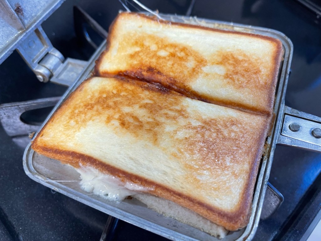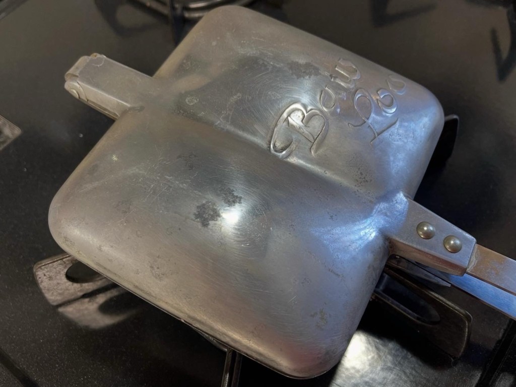 ホットサンドの作り方は、トースターを使ったりフライパンで焼いたりなど幾つかあると思いますが、我が家では昔からバウルーという名前のホットサンドメーカーを使って作っています。ホットサンドメーカーと言ってますが、電気式とかではなく、ガスコンロで使う調理器具です。