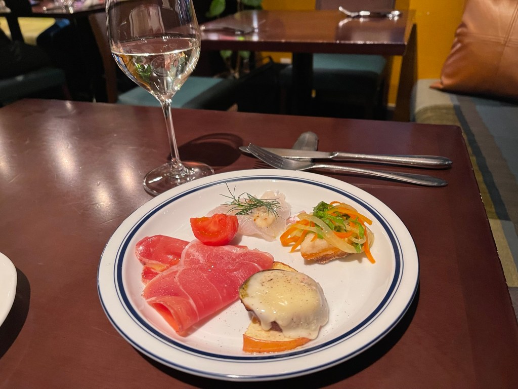 ラザーニャは10種の中からその場で選ぶ方式でした。私は一番正統派の特製ボロネーゼソースラザーニャを、オットは海鮮系のオマール海老と赤海老のラザーニャにしました。