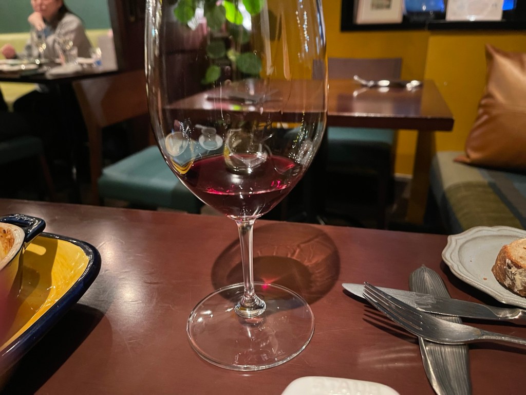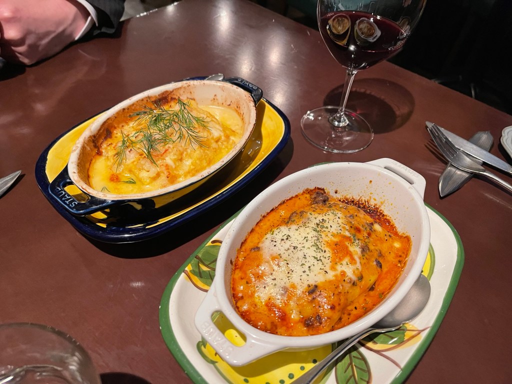 その後、メインのラザーニャが登場。追加でおススメの赤ワインも頂きました。